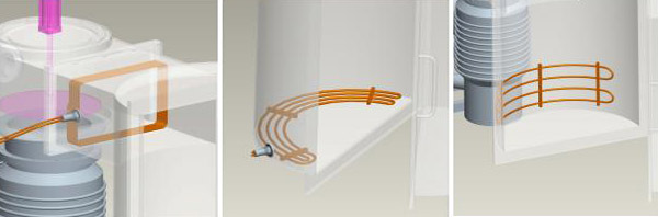 可根據(jù)用戶的具體要求設(shè)計專用的制冷盤管,制冷盤管通常有螺旋形、盤旋形、蛇形或其他形狀或有用戶自己選擇。常見盤管如下圖所示