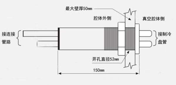 標(biāo)準輸入裝置,在腔體壁上開一個直徑52mm的孔,采用螺紋連接,O形密封圈密封,用戶也可定制輸入裝置
