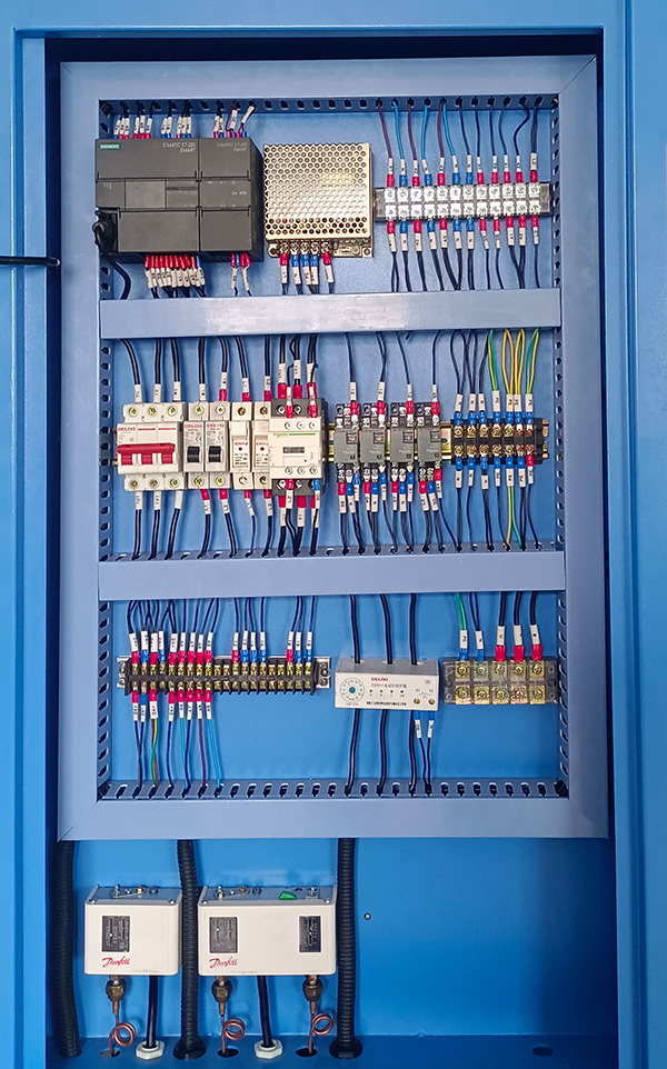 控制面板:觸摸屏顯示,有壓縮機運行指示、報警指示、遠近程轉(zhuǎn)換開關(guān)、遠程運行指示