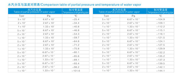 可在下表中查到你系統(tǒng)的極限壓力,根據(jù)該壓力找到同行右邊對應(yīng)的溫度數(shù)值就是你所需的制冷盤管的表面溫度,這一溫度能提供90%的水汽捕集效率。